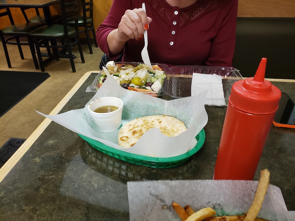 The menu covers more than just gyros. There’s spanakopita, Italian beef, cheeseburgers, Greek salads, and even rib tips. It reads like a neighborhood playbook rather than a themed restaurant, which matches the crowd: construction workers at lunch, families at dinner, college kids late night. Reviews online constantly mention portions, and they aren’t exaggerating. The pita alone could pass for a small wrap at most chain places.